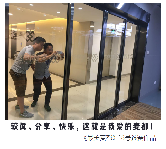 從本次活動負責(zé)人處了解到,策劃這次活動的目的有兩點:一方面是公司剛剛搬到新的辦公場地,通過組織這樣的攝影比賽有利于“麥子”們盡快適應(yīng)新的辦公環(huán)境,盡早全身心投入工作當(dāng)中;另一方面也希望通過組織這樣的攝影比賽,讓“麥子”們多關(guān)心身邊的人和事,時常保持樂于發(fā)現(xiàn)美的心態(tài)。
